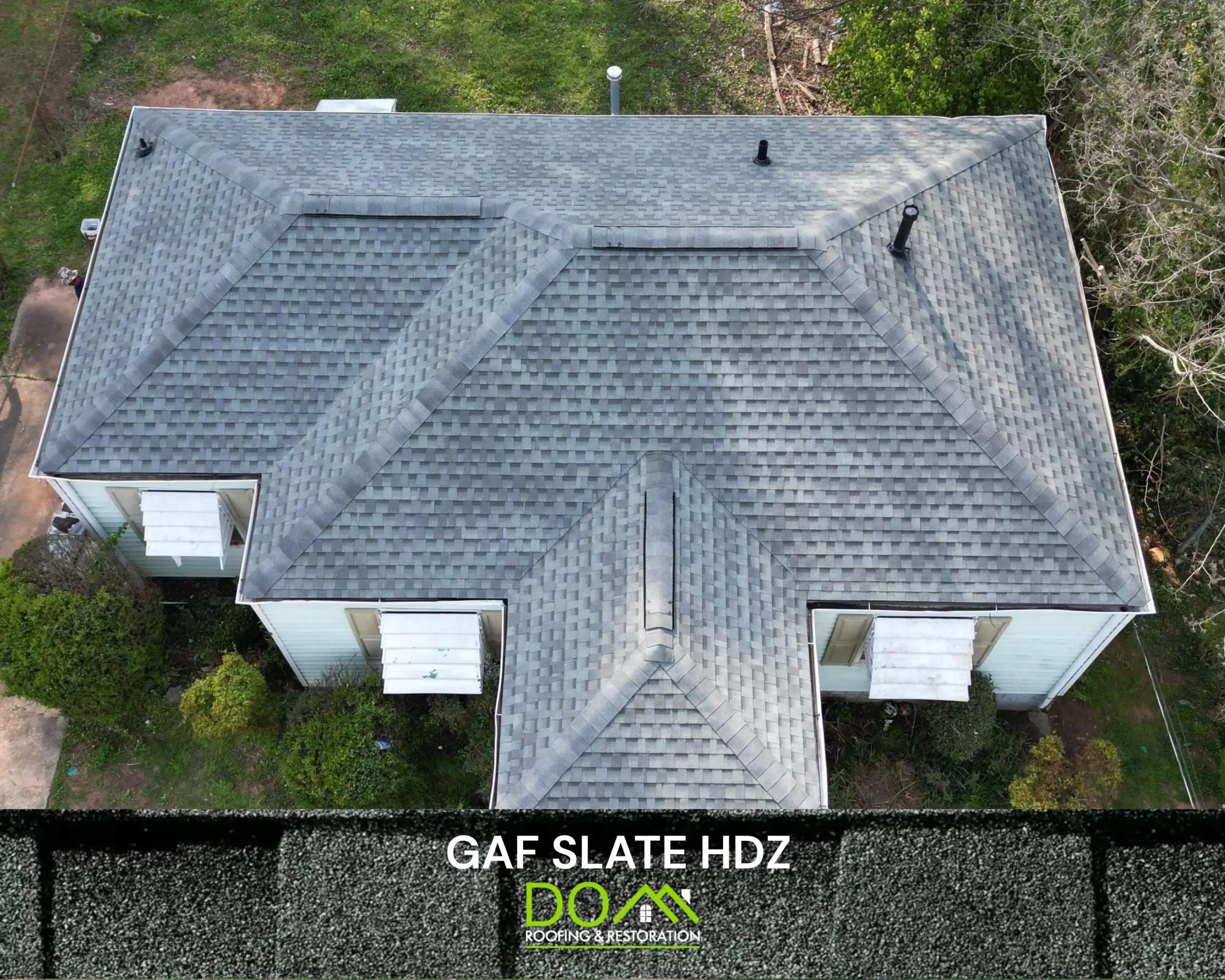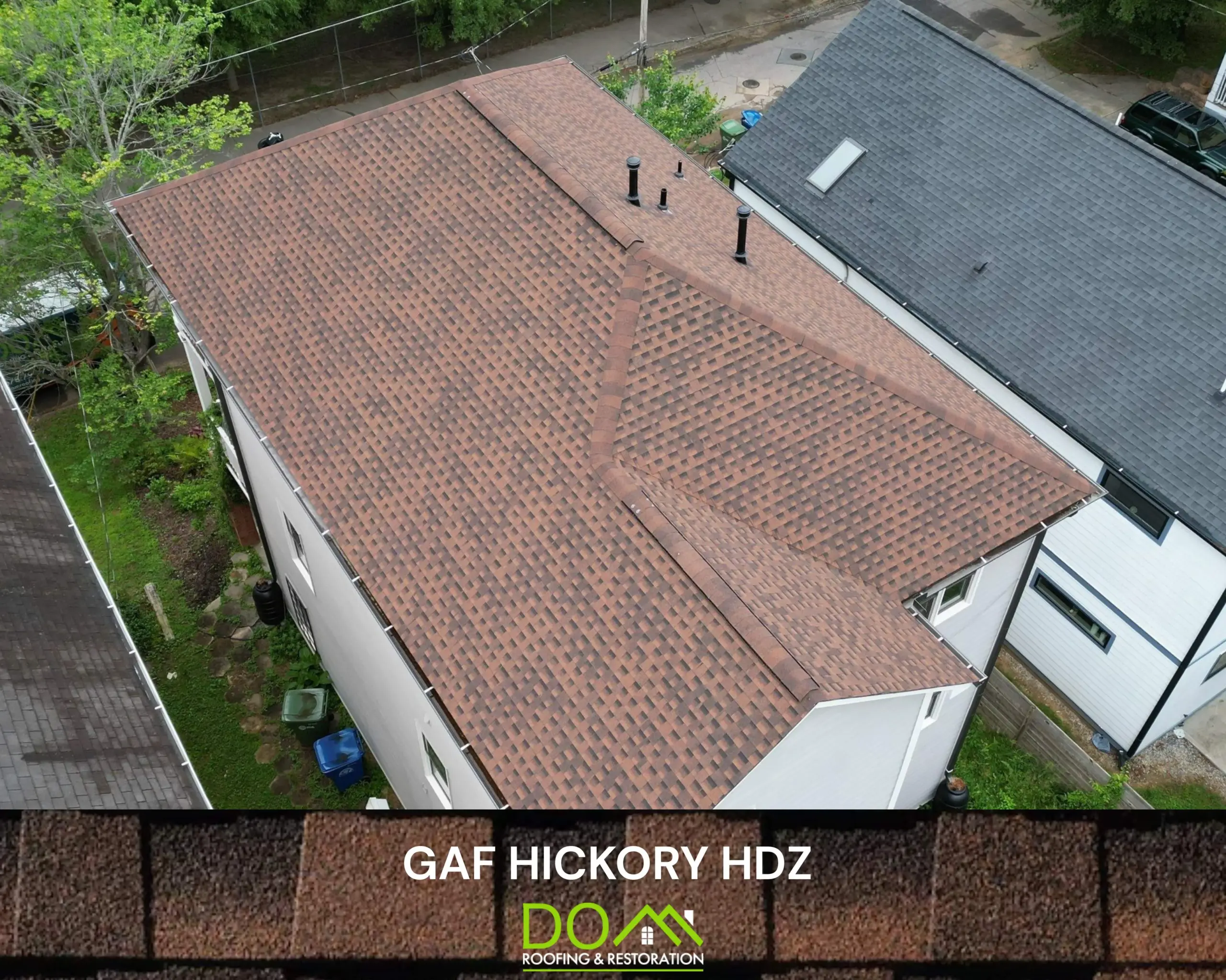 DOM roofing did my roof as his own: The quality of materials, installation, cleanup, the process. Swapped 70+ squares in one day. Very impressive. Would I do it again? 550,000% yes!